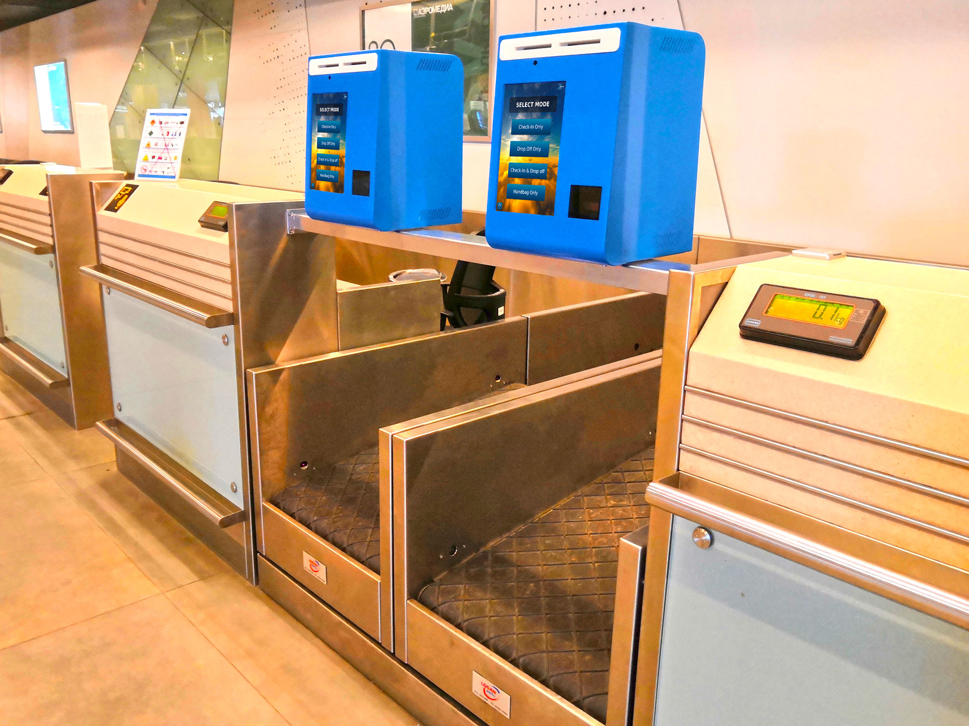 ZAMAR offers self-service kiosks of all types, which operate separately from the current CUTE platform, which means that the airport will be able to operate as normal even when the platform is experiencing setbacks. Furthermore, the airport will save significantly on platform use costs. We also guarantee integration with the airport’s current BHS/BRS luggage systems. Our general self-service system may include a different number of components, depending on the type. Thanks to the solution flexibility, the models may be positioned in different configurations tailored to the customer’s needs (including the capacity of the current infrastructure).