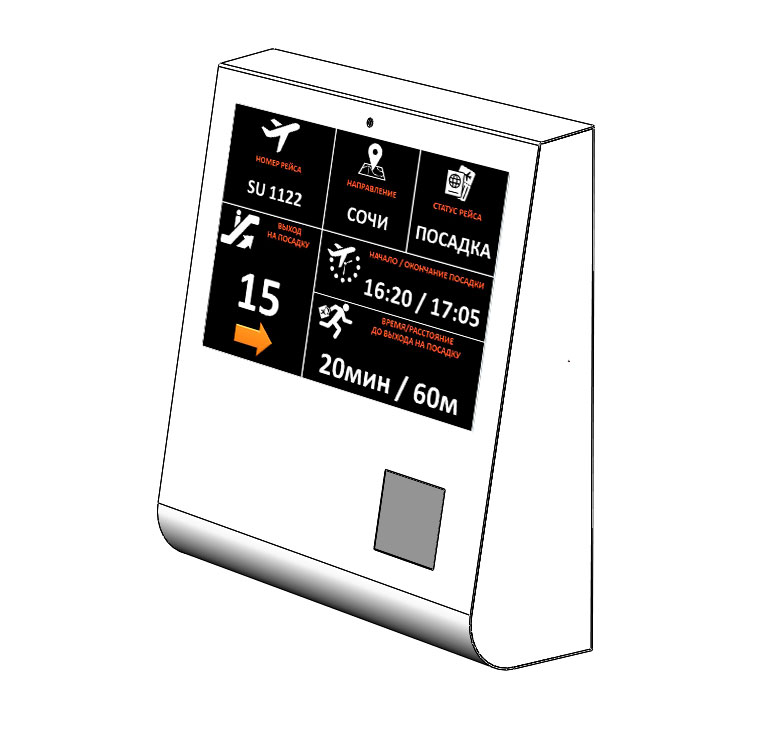 As a passenger scans their boarding pass, the information kiosk displays the following information: