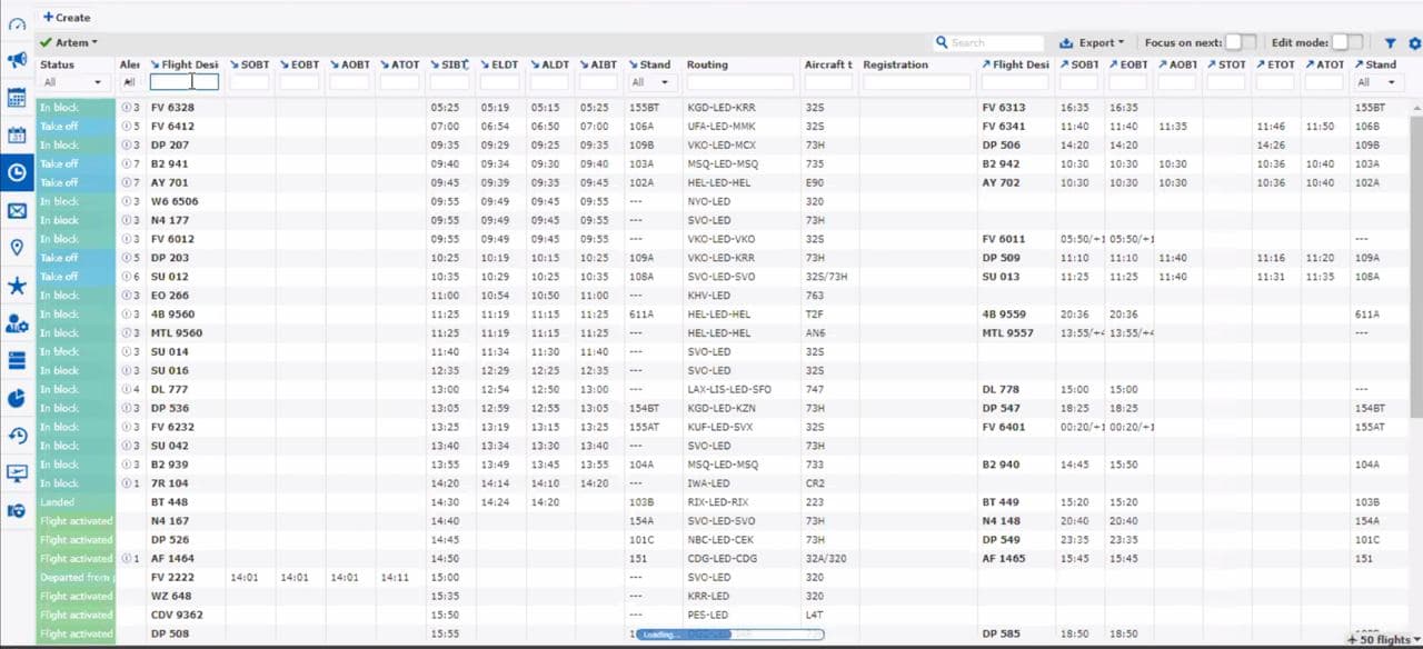 • Формирование и ведение сезонного расписания движения ВС.